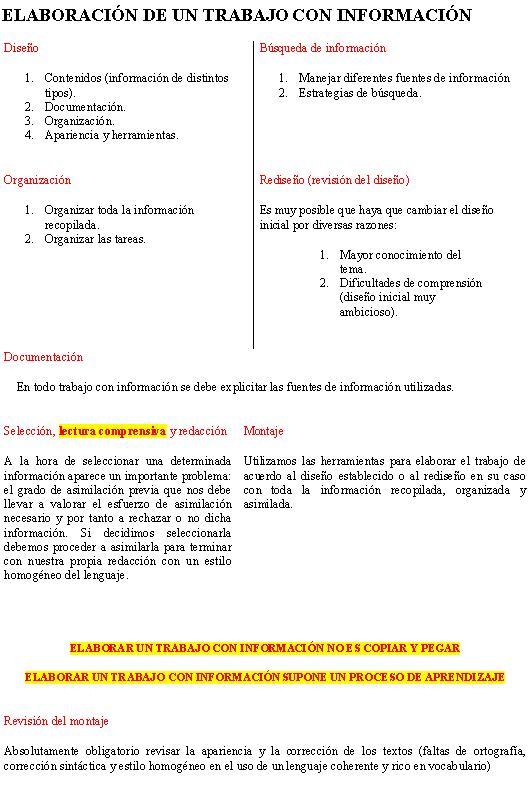 5. Una vez seleccionada toda la información y añadida a tu trabajo de la manera deseada, debes replantearte el diseño de tu trabajo porque puede que no se ajuste a tu diseño inicial debido a un exceso o defecto de información, o si crees que algo no está lo suficientemente bien explicado y quieres facilitar su compresión puedes hacer cambios de diseño.